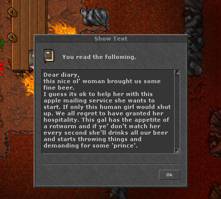 Existe uma Dwarf Mine dentro de Kazordoon, muitos devem conhecer ela, já que é o caminho para o barco a vapor, além de ser aqui o abrigo do lendário e enigmático Basilisk. Porém, não é sobre ele que vamos falar hoje, mas sim de um curioso lugar localizado dentro dessa mina. Seguindo um caminho para o oeste, passando por muitos dwarfs e descendo um buraco, é possível chegar em uma sala com exatamente 7 Dwarfs guards, 1 Witch e uma mulher deitada em uma cama, além de alguns objetos, entre eles uma maçã e um livro. Veja a imagem do local: