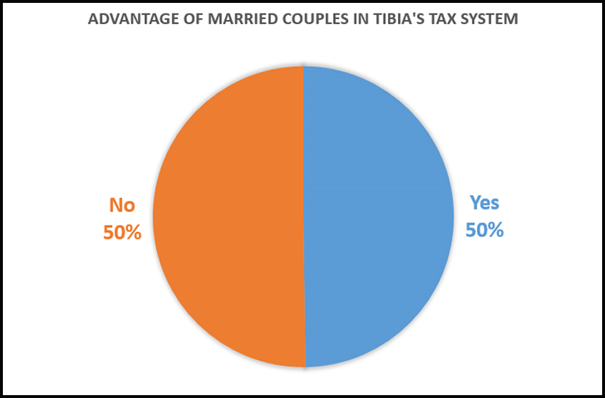 A segunda parte da questão se referia a como os casais deveriam ser tratados pelo sistema tributário, se deveriam ter uma alíquota menor ou não. E isso parece ser um problema de divisão entre os tibianos, as respostas foram de 50% para Sim e 50% para Não.