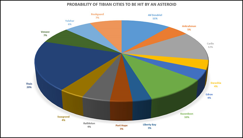 Quase 20% dos jogadores não se importariam se Thais fosse nivelado ao solo por um asteróide. Cerca de 12% dos tibianos prefeririam que Carlin conhecesse esse destino. Ab'Dendriel chega em terceiro lugar, com quase 11%.