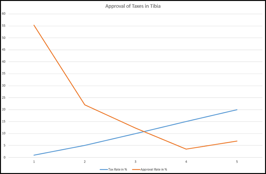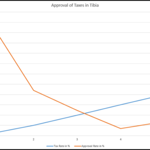 A maioria dos tibianos concordou que quanto menos impostos você precisar pagar, melhor. Cerca de 55% dos tibianos escolheram a opção de uma taxa de impostos de apenas 1%. 22% chegaram a concordar com uma alíquota de 5%.