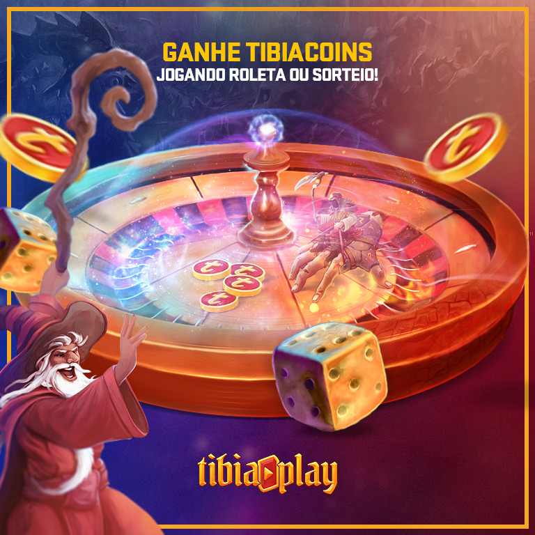 Participe gratuitamente destes sorteios. Os vencedores receberão um crédito de 5 Tibia Coins cada para tentar a sorte no na roleta ou no sorteio. Ou seja: você poderá ganhar muito mais jogando no TibiaPlay!