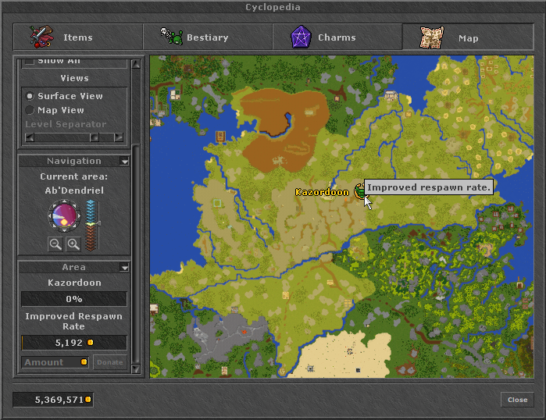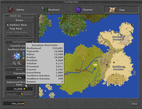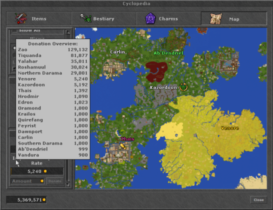 Conforme anunciamos, a CipSoft resolveu dobrar a taxa de respawn base de monstros em todo o mapa, além de fazer umas atualizações no Cyclopedia Map para adicionar um "mini game" de leilão que tem por objetivo esvaziar os seus bolsos permitir que os jogadores escolham "democraticamente" - afinal, quem pode mais ($$$), chora menos - qual área do mapa deve receber mais 2x em sua taxa de respawn - totalizando 4x em relação ao que era antes do patch de hoje. Veja imagens: