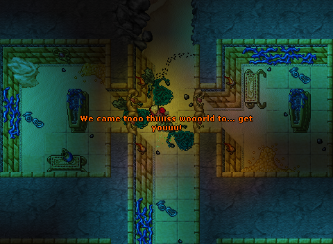 No entanto, não há tempo para se distrair com essas ninharias agora. A última passagem está em algum lugar escondido nesta selva. Eu preciso encontrá-la ou então nunca vou conseguir juntar todas as peças. O nexo requer o poder de todas as passagens, caso contrário nenhuma alma mortal jamais atravessará a entrada da catedral sepultada novamente.Dustin Sandbridge, Ankrahmun