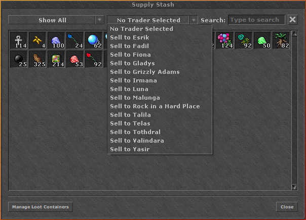 Quando lançado no último Summer Update, a galera pediu um filtro para os NPCs comerciantes mais famosos afim de facilitar a reunião de loot do Stash para venda. Não deu tempo de implementar naquela época, mas a promessa será cumprida agora: haverá um filtro extra para reunir os itens que são comercializáveis com, por exemplo, Yasir, Grizzly Adams e Esrik.