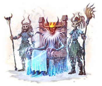 Aquelas quedas repentinas de temperatura são um prenúncio do despertar da rainha percht! Seu reino gelado é uma fortaleza de inverno interminável! Protegida por perchts e schiachs, ela governa a ilha coberta de neve com um punho de ferro.