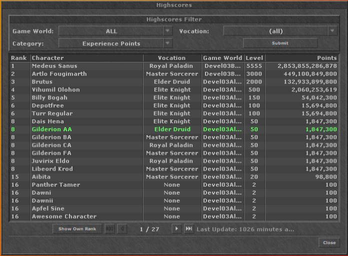 Agora será possível filtrar as classificações entre todos os mundos. Os dados serão atualizados de hora em hora.