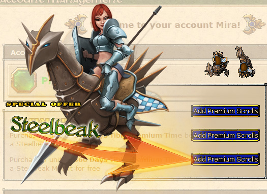 Nota: adquirir os premium scrolls in-game ou comprar qualquer combinação de pacotes menores de premium scrolls não lhe dará direito ao Steelbeak!
