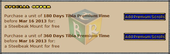 Basta acessar a sua conta no Tibia.com e acessar o box da oferta: