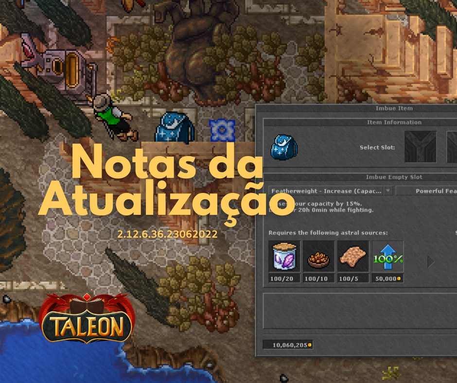 Um novo imbuement foi adicionado: de agora em diante, você pode imbuir backpacks com o featherweight e assim aumentar a cap do seu personagem temporariamente. Eis os 3 níveis: