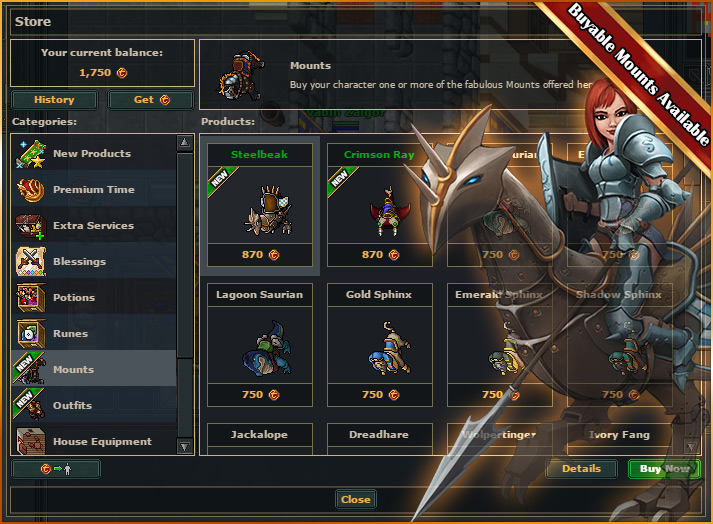Uma vez comprado, você poderá usar estas montarias a qualquer momento em seu personagem, não importa se você é Premium ou Free Account.
