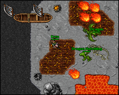 Essas ilhas seriam pequenas e teriam cavernas geradas "aleatoriamente", com temática e monstros de acordo com a força do jogador. Então um knight level 30 poderia cair numa ilha com a temática de fogo, onde enfrentariam dragons. Um knight com level maior poderia cair na mesma ilha, mas com dragon lords.
