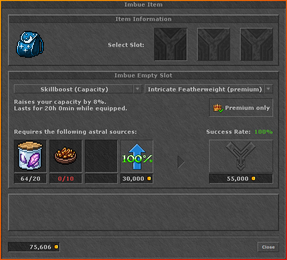 O chefe da Academia, James B., também compartilhou algumas notícias boas conosco: "Encontramos evidências que apontam para a existência de um novo tipo de imbuement. Um que tem o poder de aumentar a sua capacidade quando aplicado em sua backpack equipada. Sua forma mais poderosa ainda nos é desconhecida, pois um monstro mortal matou todo o time de pesquisadores que enviamos até agora”.