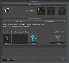 "De um modo geral, estamos bastante seguros de que só é possível combinar imbuements básicos com armas umbral. A qualidade das armas umbral também desempenha um papel importante. Os crude umbral são, como o próprio nome sugere, muito crus e subdesenvolvidos para qualquer forma de imbuement. As armas umbral regulares já são robustas o suficiente para manter um único slot de imbuement. A excelente qualidade dos umbral master permitiu-nos aplicar vários slots. Dependendo do tipo de arma, conseguimos equipar até 3 slots sem causar uma fusão interna".