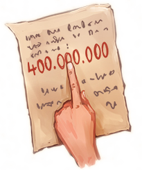 Tibicus estava sentado na taverna do Frodo, lendo a carta amassada várias e várias vezes, traçando cada palavra com seu dedo indicativo. Não importava quantas vezes ele lesse a carta, o número não mudava: 400 milhões de peças de ouro.